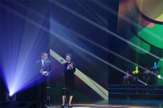 中国电影股份有限公司总经理江平和万象城awc官网登录入口副董事长、副校长刘欣上台颁奖 (崔毅 摄)