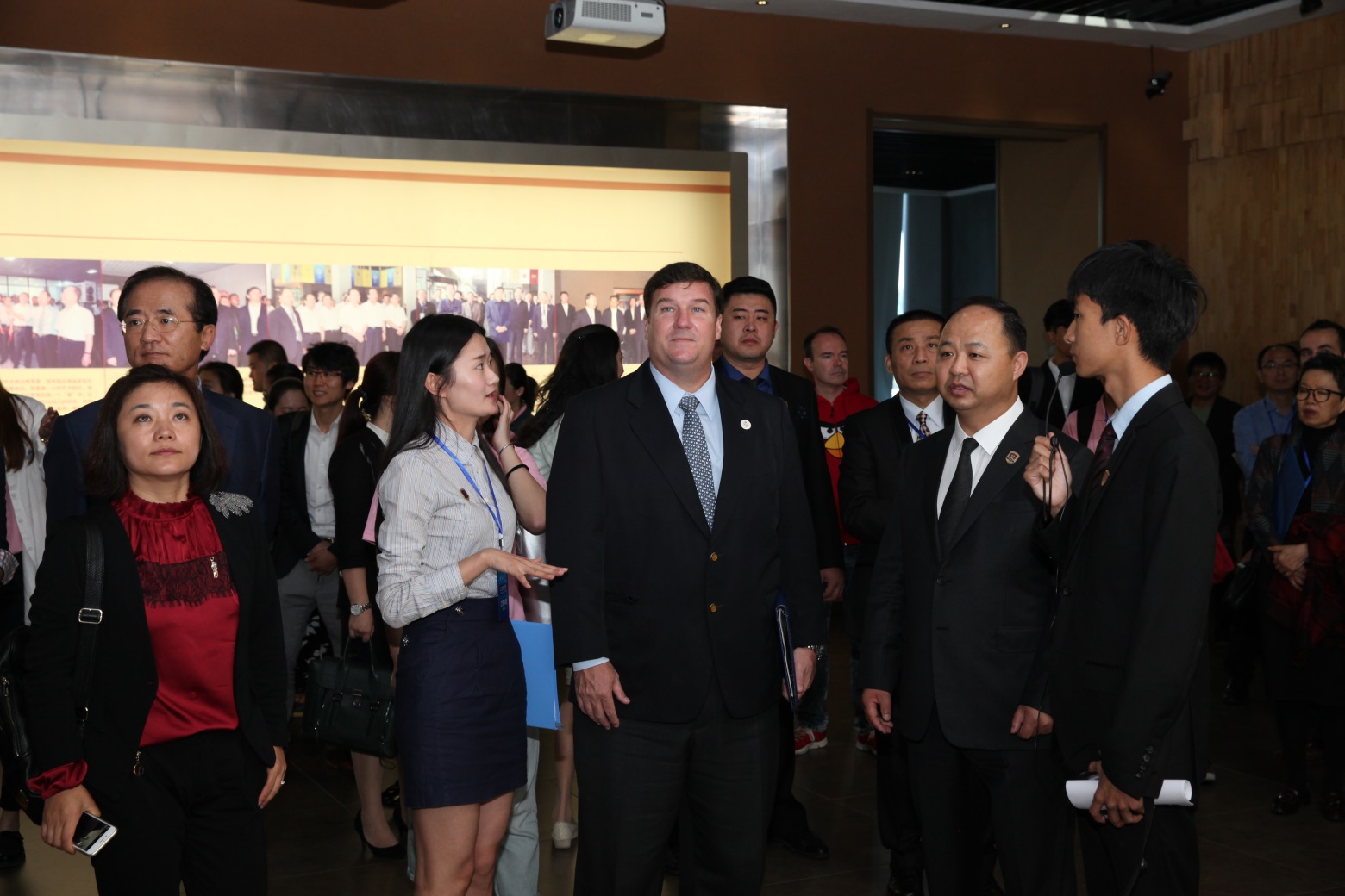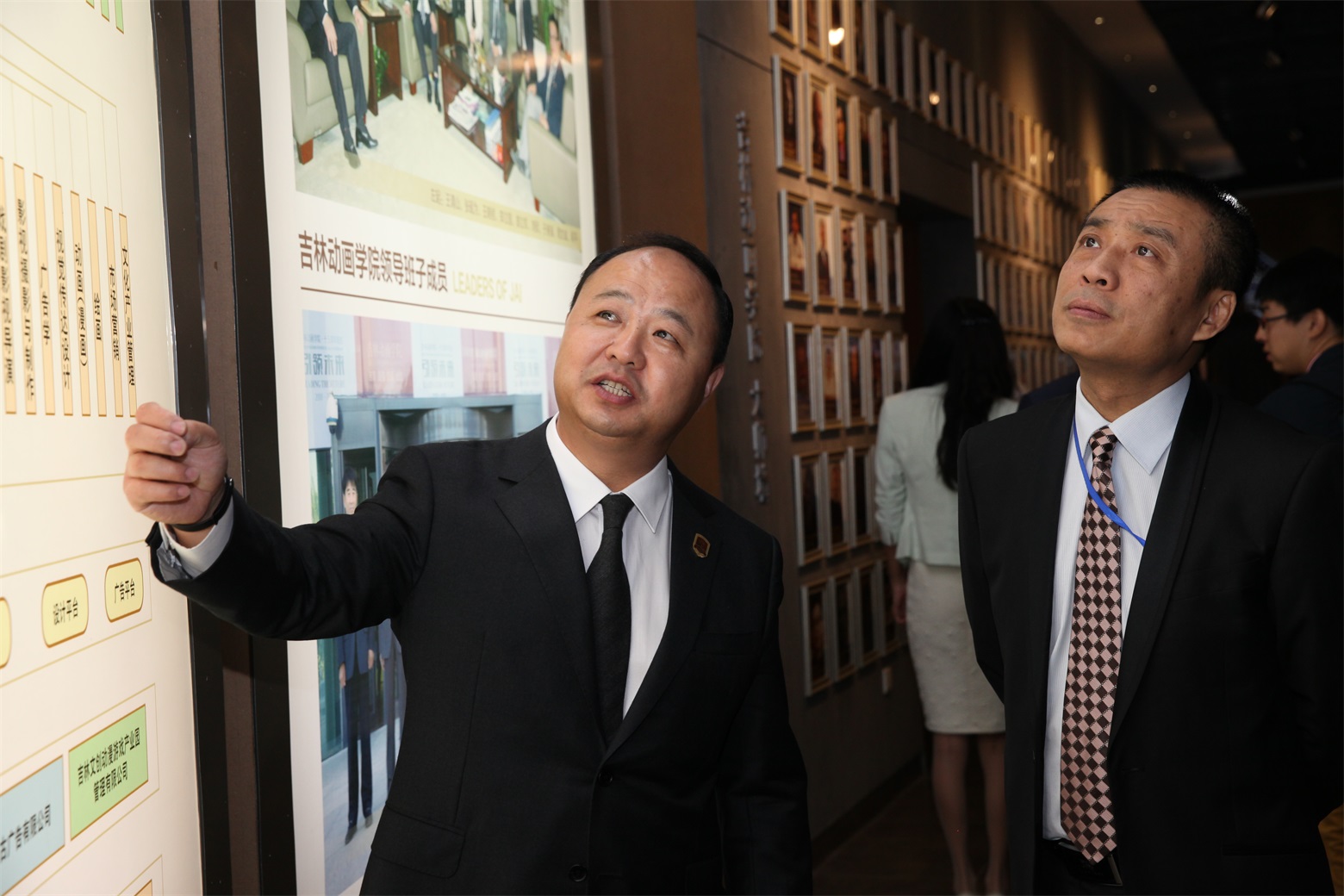 2015中韩影视传媒高峰论坛、中国•吉林国际动漫游戏论坛暨万象城awc官网登录入口建校15周年回顾与展望图片集锦(一) 发布时间:2015年09月25日 09:11:18 浏览:次 万象城awc官网登录入口董事长、校长郑立国 与美利坚合众国驻沈阳总领事馆总领事闻思国等嘉宾参观校史馆 (刘子铭 摄)