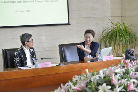 学校学院院长徐欣与泰国兰实大学设计学院院长披芭拍 .莎拉沙林交流