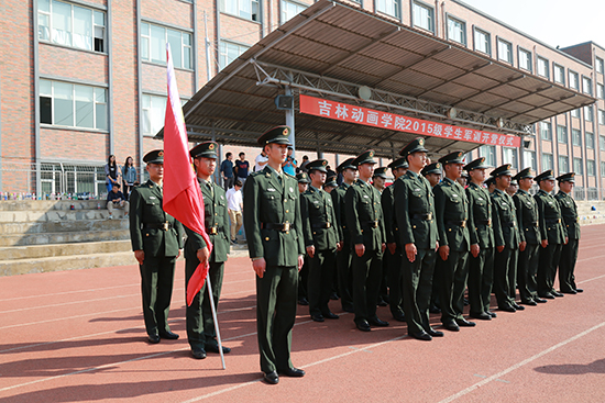 军训开营仪式在承训部队教官们英姿飒爽的升旗仪式中拉开帷幕。2015级新生军训团团长、中国人民解放军63980部队李雄上尉在代表军训团讲话中说到,军训生活是塑造同学们坚强意志品质的重要一课,虽然同学们每天将面对单调乏味的军姿训练、队列训练、基本军事技能的练习,承受着体力、意志力的高强度消耗,但这些难得的品质将是辅助同学们在寂苦的求学路上和巨大的就业压力环境中获取成功、实现自我价值的必备素养。只要同学们坚定信念,敢于挑战,勇于吃苦,那么此次军训必定成为你们大学生活中一段难忘而美好的回忆。