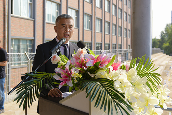 学校党委副书记、副校长岳学军在开营仪式上作军训动员讲话(高雪松 摄)