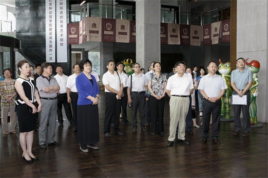 董事长、校长郑立国首先向调研组介绍了学校高新、双阳2个校区的规模和建设情况,并带调研组参观了学校产业大厦一楼的学生优秀作品展。