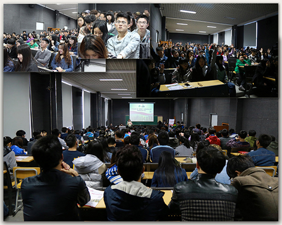 F106教室内座无虚席,同学们专注的眼神和热情的互动