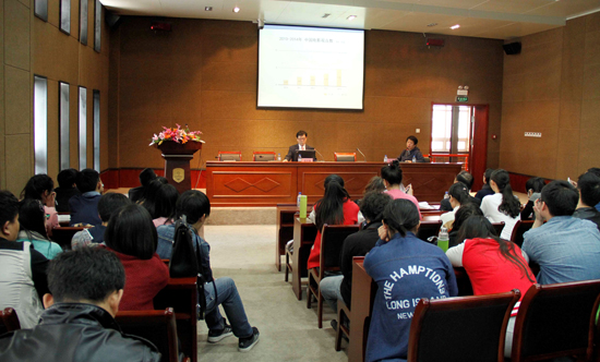 讲座现场座无虚席,郑用琢教授用了大量的经过认真调研的数据,用了大量的案例,讲座现场不时传来同学们的阵阵掌声。