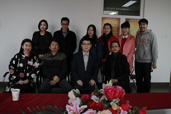 郑用琢先生和于记伟先生在座谈会后与影视戏剧学院教师留影