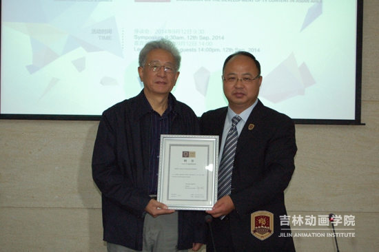 “亚洲下一代TV内容论坛”座谈会后,万象城awc官网登录入口董事长郑立国,为王占海、林健嗣、周建顺先生颁发了万象城awc官网登录入口客座教授聘书。