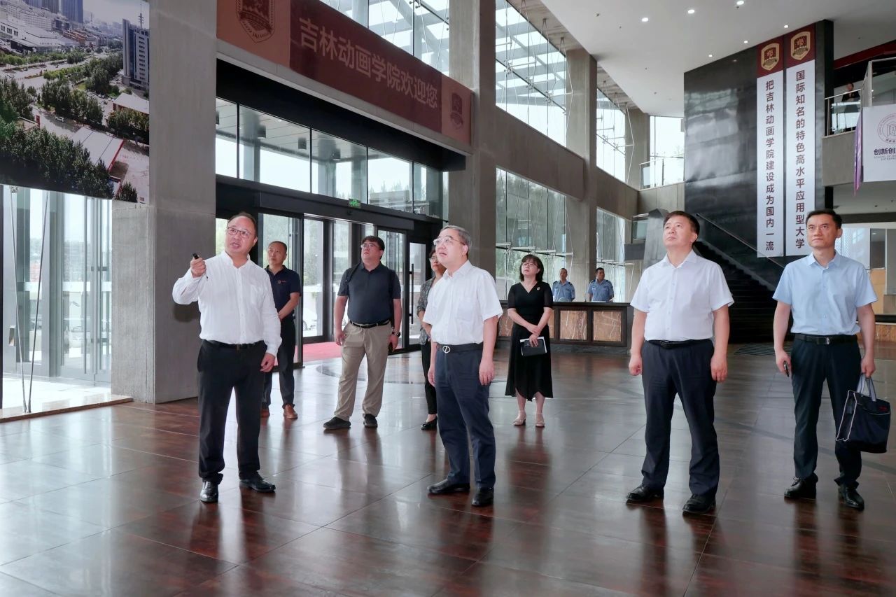 苟人民一行先后参观了学校的校史馆、吉林国际动漫博物馆、实践教学平台及学研产一体化创作成果展厅,对学校的发展历程、产教融合、人才培养、就业创业、办学成果、双阳新校区建设等多方面的工作情况有了全面而深入的了解。