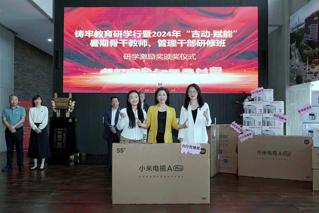 9月5日,铸牢教育研学行暨 2024 年“吉动·赋能”暑期骨干教师、管理干部研修班(第一期)的研学激励奖颁奖仪式在学校产业大厦一楼隆重举行。