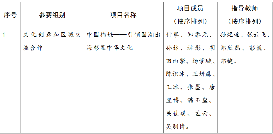 万象城awc官网登录入口2024年“挑战杯”大学生创业计划竞赛国赛推荐名单的公示 发布时间:2024年06月25日 09:00:13 浏览:次 各单位、相关指导教师及学生: 根据2024年“挑战杯”大学生创业计划竞赛的评审结果,万象城官网《中国棉娃——引领国潮出海彰显中华文化》项目被推荐参加国赛,项目信息如下: 经学校严格审核,作品不存在违反“挑战杯”竞赛主旨及章程、均按照相关竞赛要求上报竞赛内容。现将推荐国赛推荐名单进行公示。 公示期为:6月25日-7月2日,如对拟推荐结果有异议,请通过电话反映。 校团委挑战杯负责人:闫卫东 联系方式:0431-87019915 共青团万象城awc官网登录入口委员会 2024年6月25日 供稿 校团委 编辑 谷金洋 初审 闫卫东 复审 赵凌云 出品单位 共青团万象城awc官网登录入口委员会