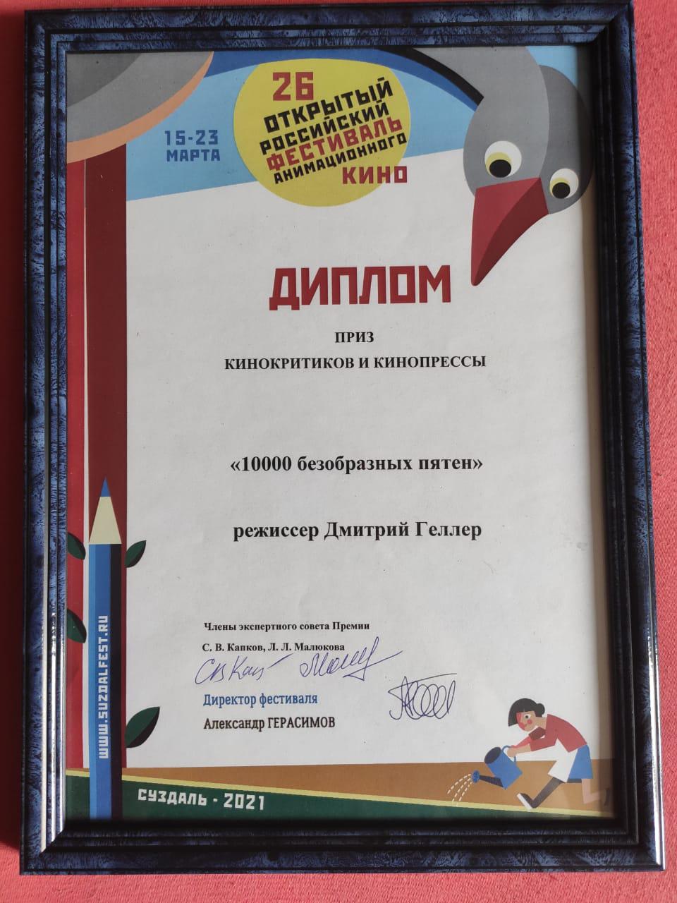 第26届俄罗斯苏兹达尔动画电影节评审组投票第一名大奖
