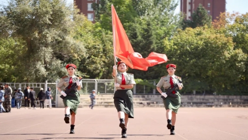 闭营仪式在庄严的中华人民共和国国歌声中拉开帷幕。岳武书记依次检阅学生方阵,一句句铿锵有力的口号,展示了青春向上的姿态;一声声慷慨激昂的誓言,喊出了吉动学子昂扬的斗志。