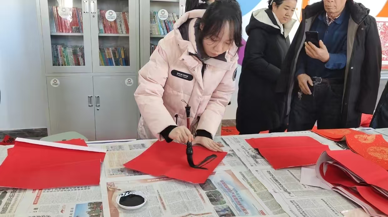 在参加“挥毫泼墨迎新春,赠福送暖过大年”的写春联社区实践活动时,我铺开红纸,蘸满墨汁,提笔写下“福”字的那一刻,心中涌起一股难以言表的感动。一位老爷爷拿着春联感慨地说:“现在会写毛笔字的年轻人越来越少了,你们能来写春联,真是太好了!”这句话让我意识到,作为新时代的青年,我们应当主动肩负起传承和弘扬传统文化的重任,让中华优秀传统文化代代相传,永不磨灭。