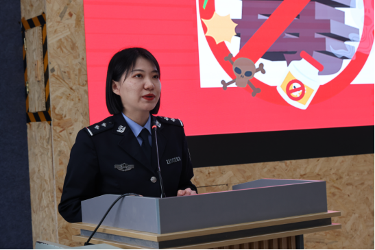 本次活动共分为三部分,第一部分由“蔚蓝天使”宣讲团王雪萌老师进行主题为《对毒品替代物说不》的宣讲,通过现场对毒品类型、毒品副作用、吸毒者辨别等内容的讲解,让大学生了解毒品的种类和危害,提示大学生保护好自己,做自己健康的第一责任人。