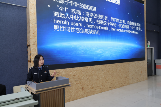 第三部分由吉林省女子强制隔离戒毒所医疗中心医师张弛老师进行艾滋病知识讲座,通过讲解艾滋病的相关知识,让大学生提高健康意识,增强自我保护的能力。